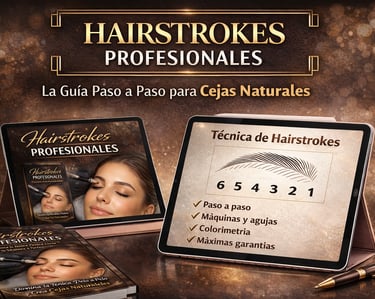 Hairstrokes Profesionales es una guía digital práctica que te enseña, paso a paso, cómo crear cejas naturales utilizando la técnica de hairstrokes, incluso si estás empezando o todavía no te sientes segura con el procedimiento.
